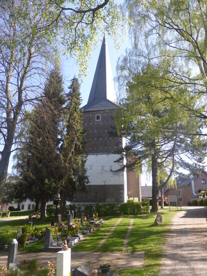 Der fünfseitige Ostchor wurde ca. 1855 angebaut. Später wurde der Turm mit einer spitzen, achteckigen Haube bekrönt.