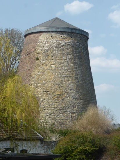 Der Mühlenstumpf bestand aus Bruchstein und wurde mit Backstein ergänzt; der ehemalige Zinnenkranz wurde entfernt und in den 1950er-Jahren durch ein neues Betonkegeldach ersetzt.