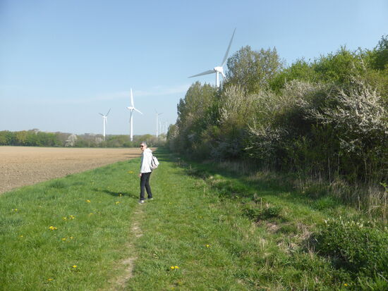 Wir folgen dem Pfad , queren die Bahnlinie und stehen vor dem - ich nenne ihn jetzt so - Ostwall, der die Holländer in Corona-Zeiten vor den Deutschen schützen soll.
