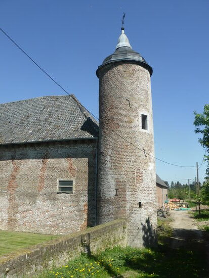 Ursprünglich besaß die rechteckige Anlage eine herrschaftliche Wohnung, eine geweihte Kapelle und vier Türme, von denen heute nur die zwei an der Straßenfront erhalten sind. Noch Ende des 19. Jahrhunderts war es auf zwei Seiten von Wasser umgeben. Zum Haus gehörten 293 Morgen Land, in dessen Mitte das Haus lag.