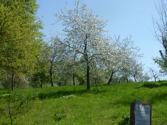 Auf der anderen Straßenseite befinden Streuobstwiesen .