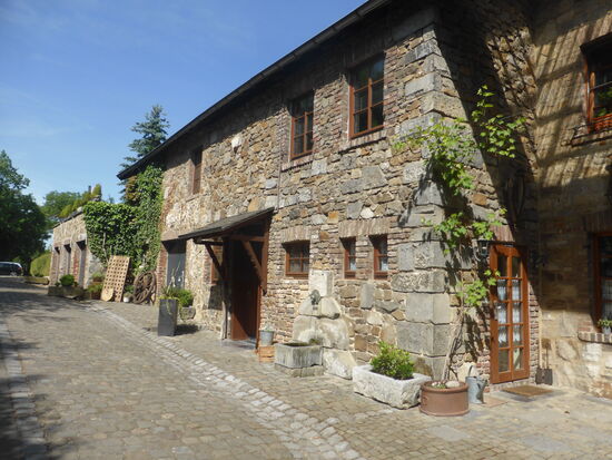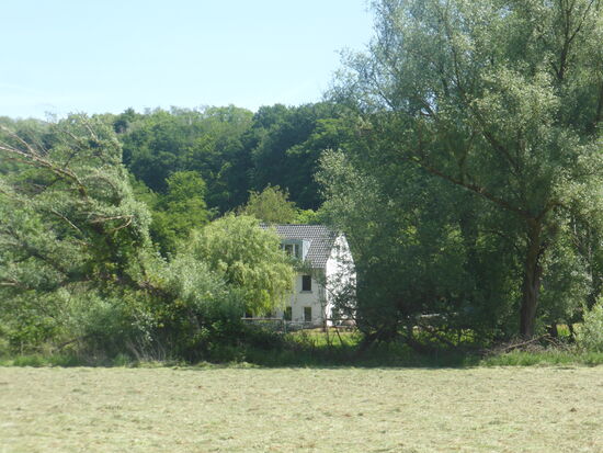 Etwas oberhalb des Tales führt der Pfad auf eine geteerte Straße, die zur 'Pumpermühle' führt.