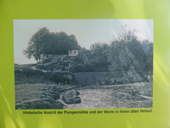 Bis zur Jahrhundertwende verlief parallel zum heutigen Weg ein von der Wurm abgeleiteter Mühlengraben, der drei Mühlenräder antrieb. Erhalten geblieben ist ein großer Teil des langgestreckten Ablaufgrabens der Mühle, der „Untermühlengraben" unterhalb des Burgbusches, fälschlicherweise auch alte Wurm genannt. Heute befinden sich in der Mühle ein Hotel und Restaurant.