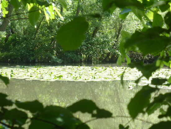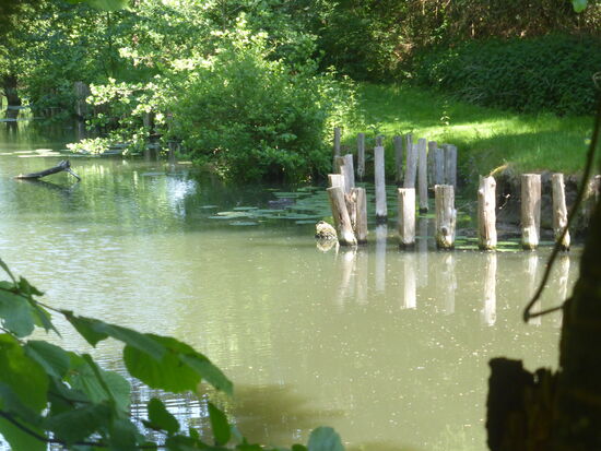 Auf dem Rückweg mäandriert die Wurm stark, einen Arm hat man abgetrennt und ein künstliches Biotop mit Insel und ruhigem von Seerosen bedecktem Wasser geschaffen.