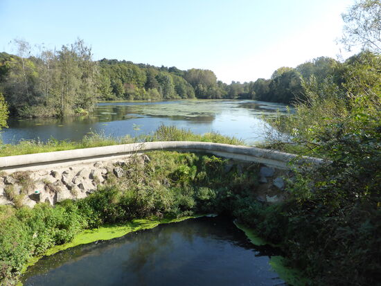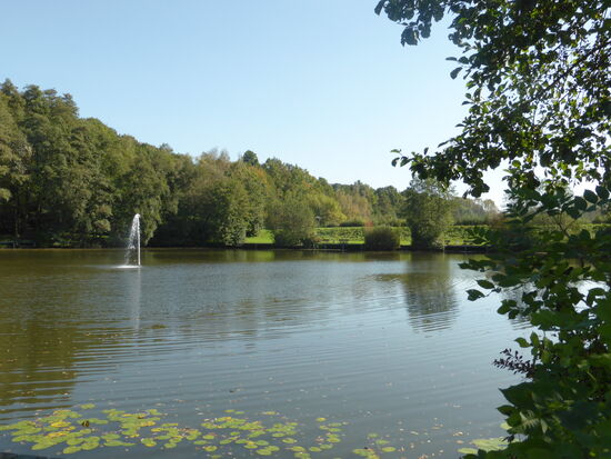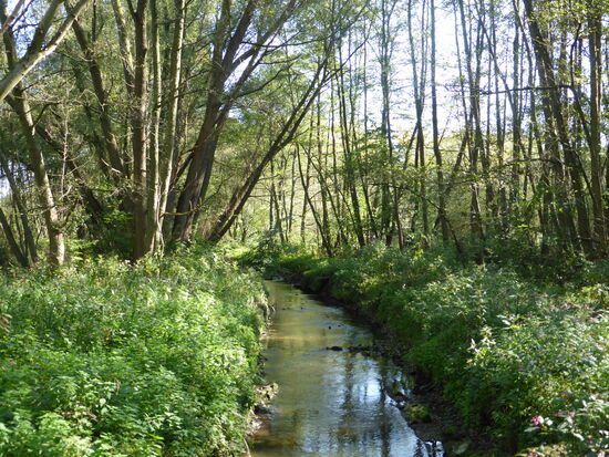 Wenn die Wohnbebauung von Herzogenrath beginnt, drehen wir um und nehmen den Weg entlang des großen Weihers auf der anderen Seite des Baches.