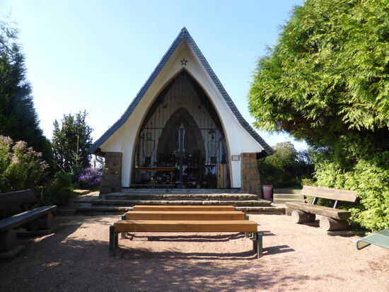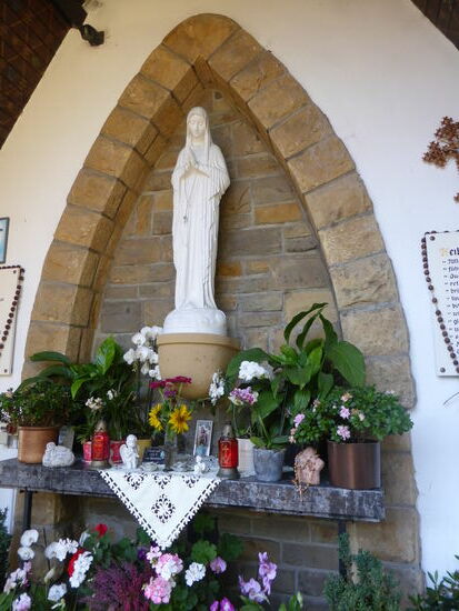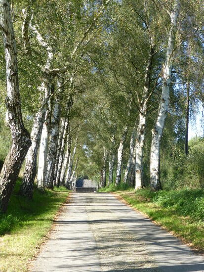 Am Ende des Rundganges steigen wir noch hinauf zur Banneux Kapelle. Sie liegt in der Nähe von Schloss Ottenfeld und ist nach der Wallfahrtsstätte Banneux in den Ardennen benannt. Eine schöne Birkenallee führt von der B57, der Würselener Straße an der Kapelle vorbei zum Schloss.