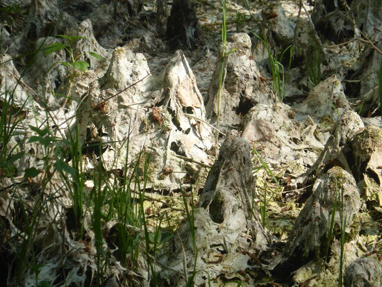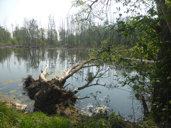 Wir befinden uns in einem z.T. hochwassergefährdeten Gebiet der mäandrierenden Rur. Nach der nun seit Wochen herrschenden Trockenheit sehen die ehemals überschwemmten Gebiete 'abenteuerlich' aus.