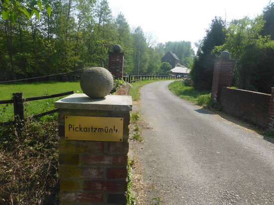 An der Pickartzmühle erreicht der Waldweg wieder eine asphaltierte Straße. Hier bietet sich die erste Gelegenheit auf die andere Seite der Rur zu gelangen.