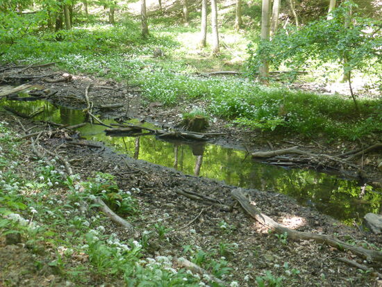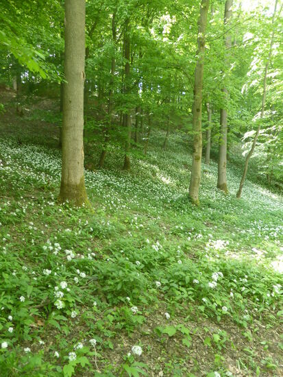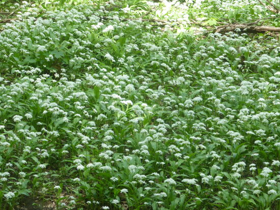 Hier blüht der Bärlauch noch - dafür aber in riesigen Rabatten entlang des Baches.