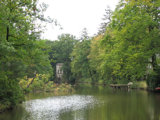 Nicht nur diese großen Wasserflächen sind für den romantischen Landschaftspark, der unter dem Einfluss des Besitzers Thimoteus Schilling und seines Sohnes Karl entstand, charakteristisch. Ebenso gehören Inseln, eine Vielzahl an Gräben und Bächen sowie Baum- und Rhododendrenpflanzungen dazu.