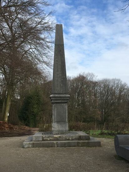 Der 1810 zur Vermessung des Rheinlands aufgestellte Obelisk erinnert an mehrfache Aufenthalte der Schwester Napoleon Bonapartes, Pauline Fürstin Borghese, im Trappistenkloster Mont Sion in Bergerbusch zwischen 1809 und 1811. Da sie in dem angrenzenden Wald mit hohen Buchen und Eichen oft und gern verweilte, erhielt dieser später den Namen Paulinen-Wäldchen.