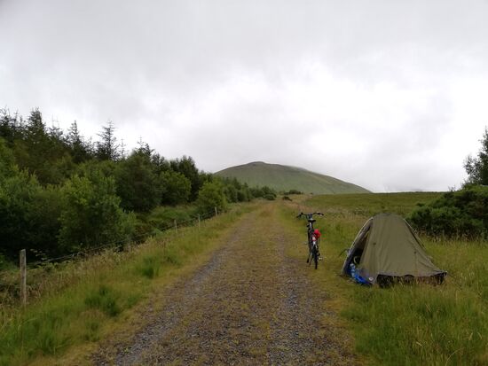 Um 18:30 Uhr erreiche den wolkenbedeckten Gleniff Horeshoe. Alles ist mit Zäunen abgegrenzt, sodaß ich probleme habe, ein Schlafplatz zu finden. Schließlich finde ich eine Pforte, die nicht abgeschloßen ist. Einige hundert Meter hinter der Pforte ist eine Platz für mein Zelt.