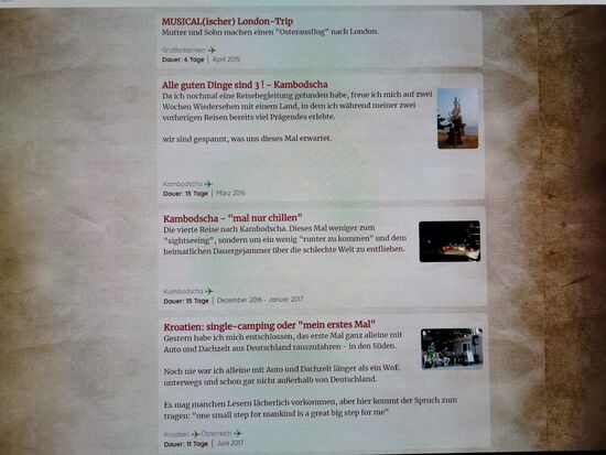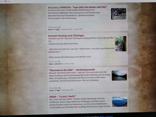 Im Dezember 2012 schrieb ich hier meinen ersten Reisebericht, inzwischen sind 15 weitere dazu gekommen. Von Tagesausflügen bis zu Fernreisen, vom Schwarzwald bis in den Oman, ich blicke auf sehr unterschiedliche Reisen zurück und bin dankbar, dass ich das alles erleben konnte.