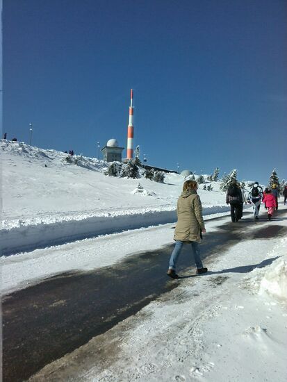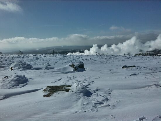 Bei strahlend blauen Himmel, durch eine schneebedeckte Landschaft, auf den Brocken zu wandern ist ein Traum.