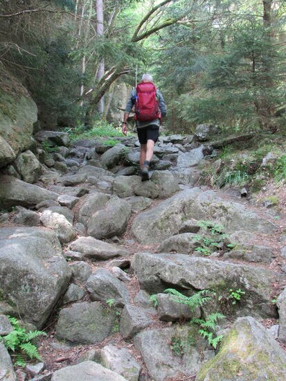 Irgendwo hier über Wurzeln und Steinbrocken führt der Weg.