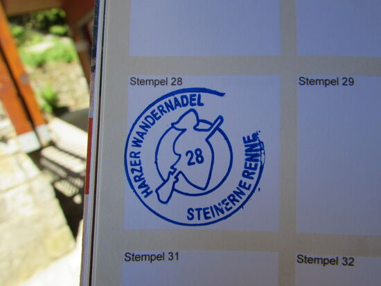 Der Waldgasthof hatte zwar noch kein Getränk anzubieten, aber einen Stempel in unseren Wanderpass konnten wir schon holen