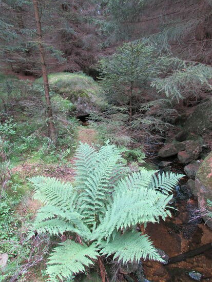 Große Felsen einerseits und die Ecker andererseits begleiten nun unsere Schritte auf dem mit Wurzlen zerfurchten Weg.