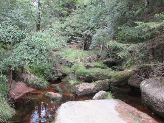 Die Eckerquerung ist ein Highlight auf dem Rundweg. Über große Felsbrocken führt der Weg über die Ecker. Eine Bank oberhalb der Querung lädt ein die Ruhe und einmalige Natur an dieser Stelle für einige Momente zu genießen. Allerdings sind wir heute nicht allein an diesem schönen Ort.