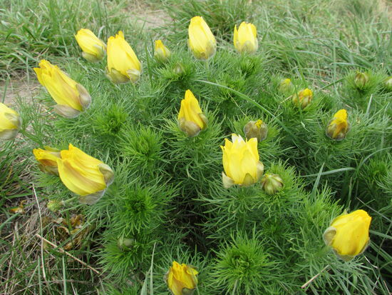 Inzwischen sind hier einige Spaziergänger unterwegs, die einfach nur das Adonisröschen bewundern wollen.