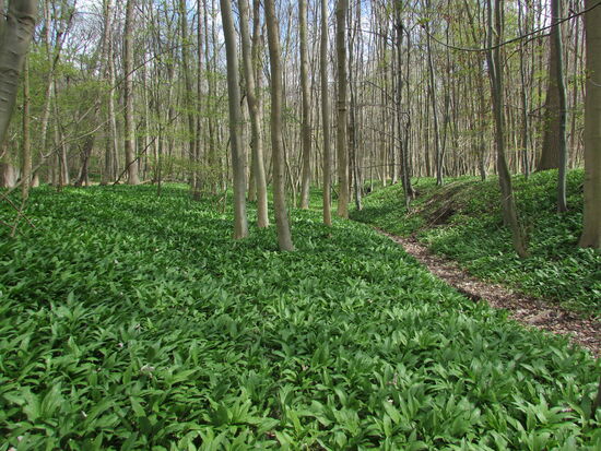 Gestärkt geht es weiter durch diesen schönen Mischwald. Der Waldboden ist so weit das Auge reicht bedeckt mit Bärlauch. Die Luft ist angenehm frisch und das zwitschern der Vögel begleitet unseren Weg. In so einem Umfeld können wir Corona vergessen und die Seele kann auftanken - herrlich!