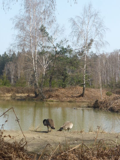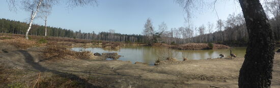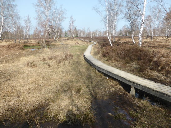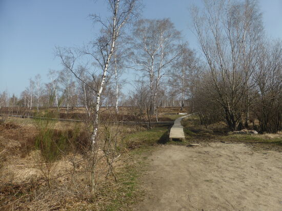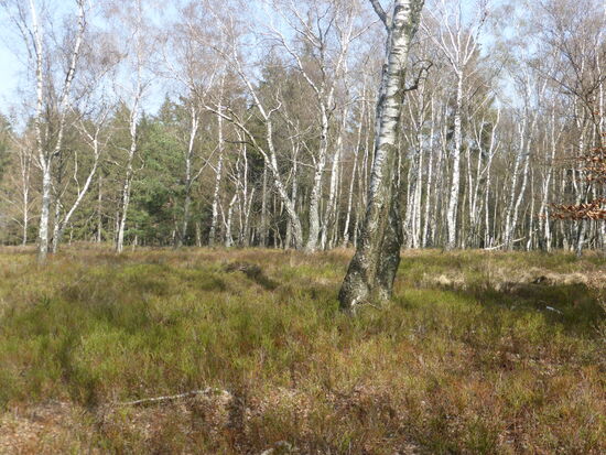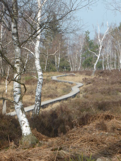Der Birkenwald wird lichter - das Hochmoor beginnt. - bald ist auch ein Holzsteg vonnöten, der über die wasserreichen Flächen führt.
