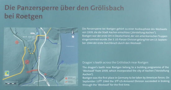 Der Rückweg führt uns eine Stück durch Bebaung von Roetgen, bevor wir wieder einmal am Gröllsbach auf die Reminiszenzen der Nazizeit treffen. Näheres hier