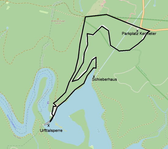 Es gibt zwei Möglichkeiten, die Urfttalsperre zu besuchen: entweder man steigt vom der NS-Ordensburg Vogelsang hinab, überquert die Victor-Neels-Brücke und läuft am 'See' entlang. - oder man parkt auf dem Höhenrücken (Kermeter) und steigt durch den Wald direkt hinab zur Talsperre. Wir haben uns für die zweite Alternative entschieden und nutzen die komoot-app zur Planung und offline-Navigation