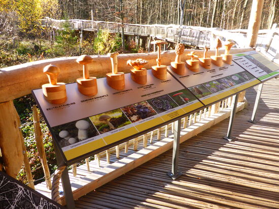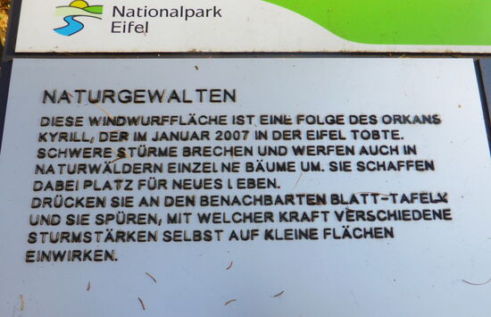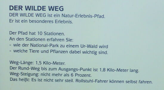 In der Nähe des Parkplatzes war zu Beginn der Wanderung der 'Wilde Kermeter' wegen Forstarbeiten gesperrt, am Ende ist er wieder geöffnet. Wir machen den kleinen Teil des Weges, der als Hochweg angelegt ist und zahlreiche Informationen bietet.