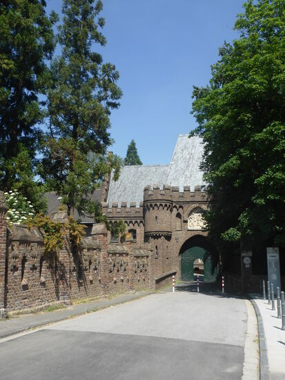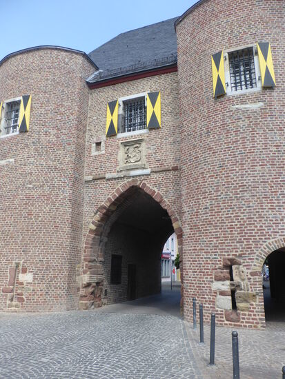 Das Aachener Tor gehört mit seinem zentralen zweigeschossigen Rechteckbau und dreiviertelrunden Türmen an den Außenecken zu den mächtigsten Stadttoren des Rheinlandes.