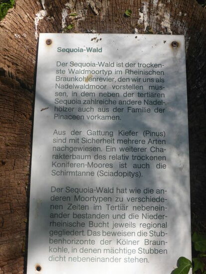 Seit 1967 hat die RWE Power-Forstabteilung in einem Teil der Anlage einen Forstlehrgarten eingerichtet. Der Forstlehrgarten vermittelt einen Eindruck von der Pflanzenwelt des Tertiärs. Zwar ist von der damaligen subtropischen Vegetation in unseren Breiten nur wenig übriggeblieben, doch Nachfahren der urzeitlichen Bäume, Sträucher und Moorpflanzen aus anderen Erdteilen liefern den Besuchern ein im wahrsten Wortsinn lebendiges Bild des Tertiärs. Als Überreste urzeitlicher Flora flankieren zwei mächtige, rund 15 Millionen Jahre alte Sequoia-Stümpfe den Eingang zum Schlosspark. Ihr hoher natürlicher Gehalt an Gerbsäure verhindert über Jahrmillionen die Zersetzung, so dass sie gut erhalten in einem Tagebau gefunden werden konnten.