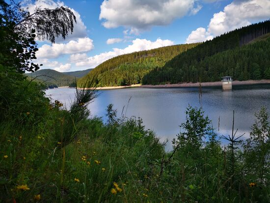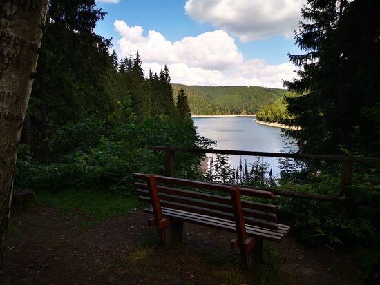 Die Parkzeit geht ganz knapp aus: ich laufe im Uhrzeigersinn und als ich denke, ich habe die Hälfte (nach etwas mehr als 4 km) wo sich die Richtung ändert - Richtung "zurück" - begegnet mir ein Mann auf einem Fahrrad, völlig erschöpft und fragt mich: "oh mein Gott, nimmt das hier nochmal ein Ende?" Ich frage ihn, wohin er will. Er sagt, er käme von der Staumauer und will auch wieder dahin. Ich sage, kein Problem, ich bin gerade etwas mehr als 4 km gemütlich spaziert... Er freut sich sichtlich... und ich sehe kurz danach ein Schild: Staumauer 10 km... oha....die zweite "Hälfte" scheint deutlich länger zu sein als die erste.