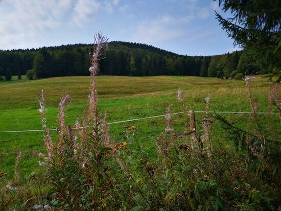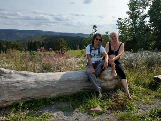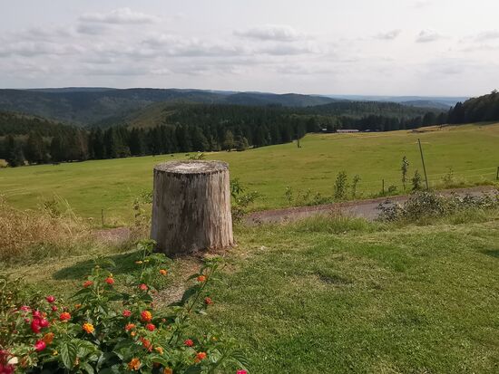 Freunde aus Nürnberg sind gerade auf dem Weg in den Urlaub nach Norden. Und zum passenden Zeitpunkt so in der Nähe, dass wir uns tatsächlich auf eine gemeinsame Rast am Berggasthof Stutenhaus treffen. Ein Picknick bei Sonnenschein mit herrlichem Blick, dann reisen Sabine und Mani mit dem Wohnmobil weiter, ich mache mich per pedes auf den Weg zurück Richtung Parkplatz.