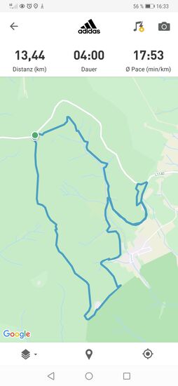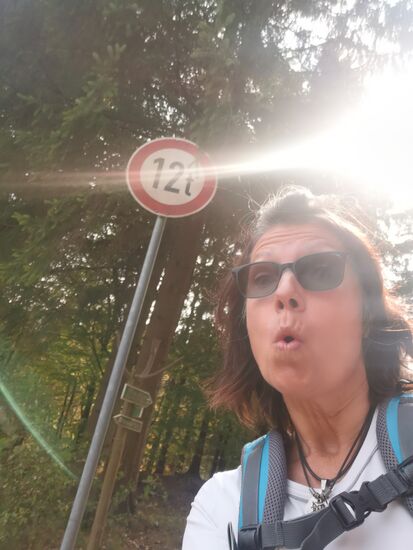 Nun lasse ich mich von Tante Google navigieren, gerate so auf einen Weg, von dem ich vermute, dass ihn äußerst selten ein menschlicher Fuß tangiert. Auch begegnen mir keine Menschen mehr. Ich frage mich, welches Risiko größer ist: vom angeknacksten Baum erschlagen oder vom Jäger erschossen zu werden, weil der mich für ein Wildschwein hält??