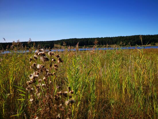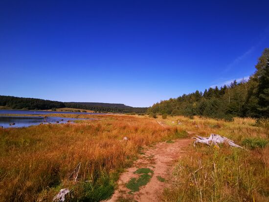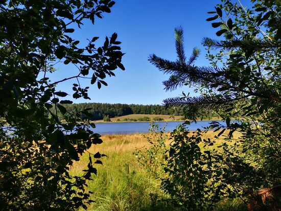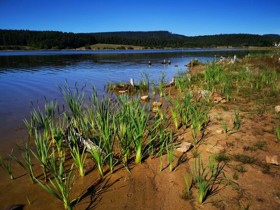 Da die Talsperre wenig Wasser führt, ist es möglich auf Trampelpfaden lange Strecken direkt am Wasser entlang zu laufen. Und es lohnt sich: Schilf, Gräser, Baumwurzeln gestalten hier wunderschöne Stillleben.