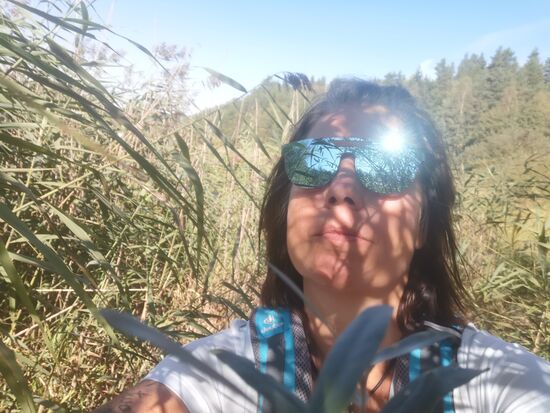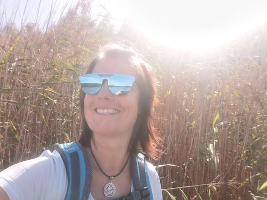 Weiter geht es, hin und wieder führt der Trampelpfad durch Schilf und Gräser, die um einiges höher sind als ich