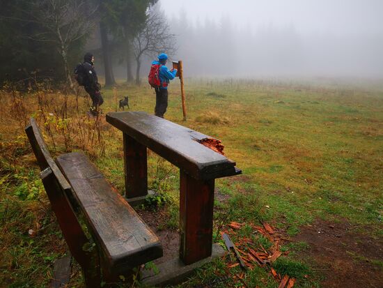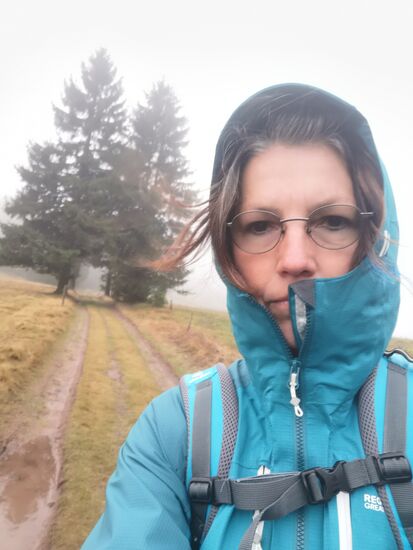 Das nebelige Nieselregenherbstwetter hält mich nicht davon ab, wieder eine Wanderung zu machen. Und ich habe heute Begleitung von zwei Wanderfreunden, Chris und Andreas und der kleinen Kira (Hündin), die so fit ist, dass sie vermutlich das dreifache an Kilometern zurück legt wie wir.