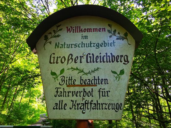 Heute lande ich zufällig im kleinen Örtchen Gleichamberg (920 Einwohner). Wie passend dieser Name doch ist für ein paar Häuser, die direkt am Fuße eines Berges (oder doch eher Hügels?? mit 679 m) liegen, der Große Gleichberg. Mit meiner Freundin startete ich den Aufstieg von der anderen Seite und so bin ich gespannt, wie die kleine Wanderung sich von hier aus (Südhang) gestaltet.