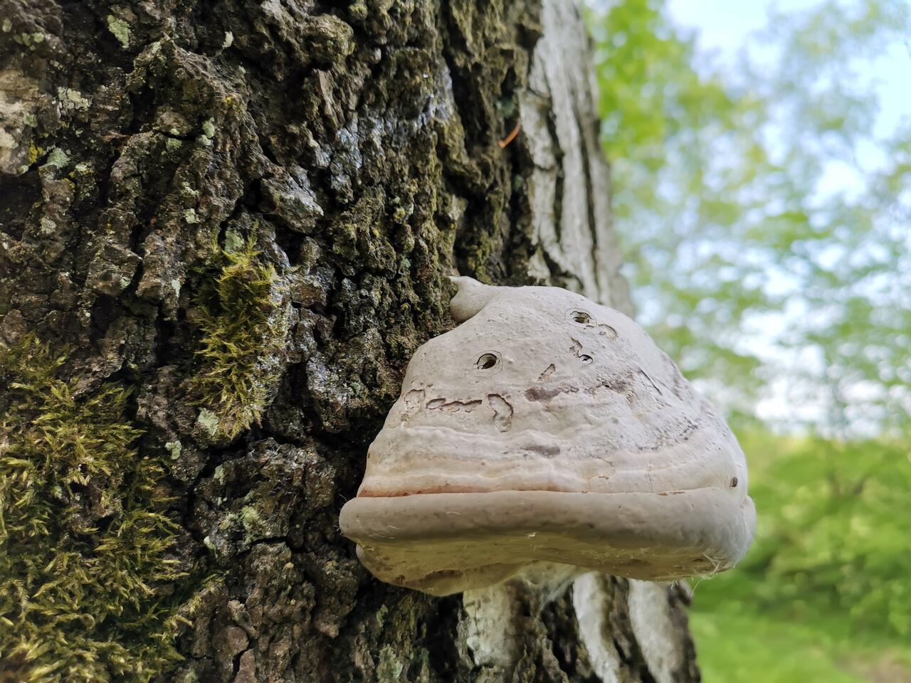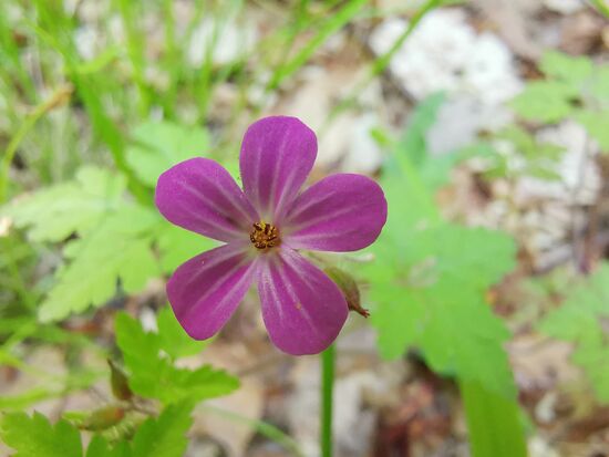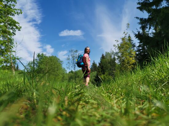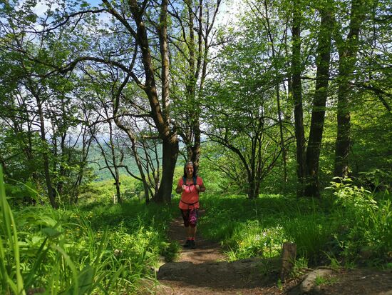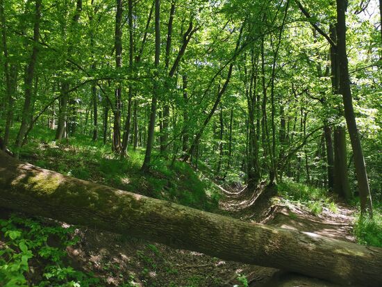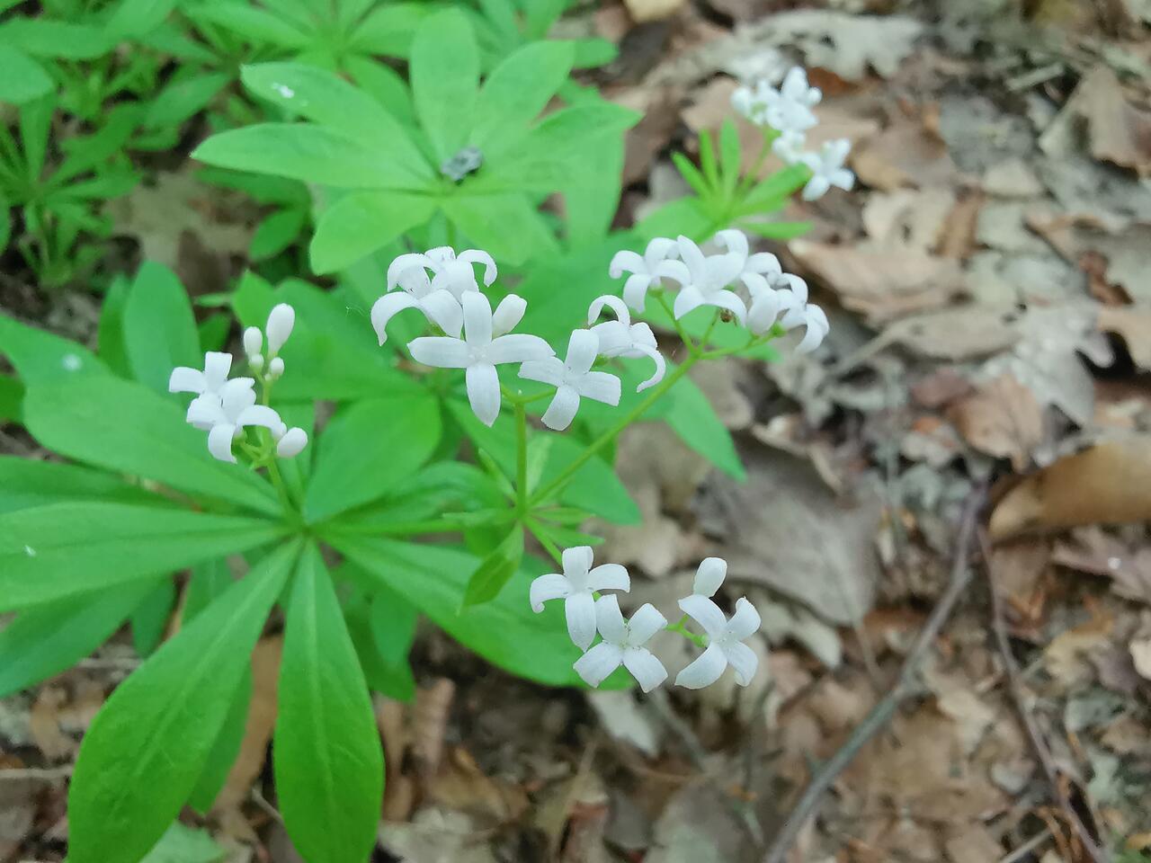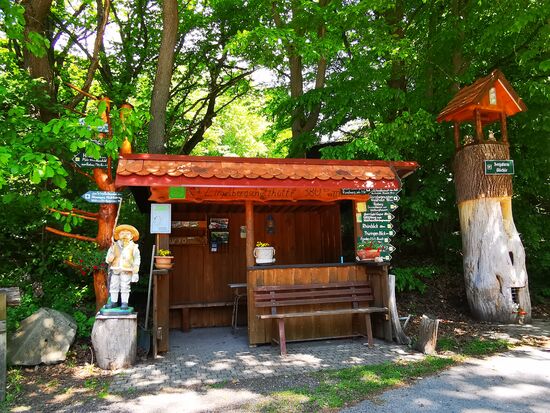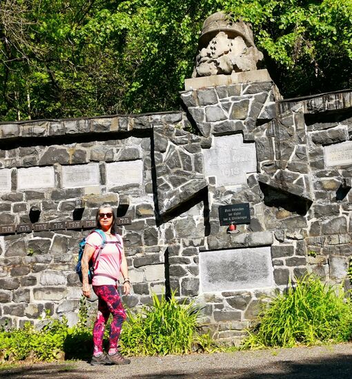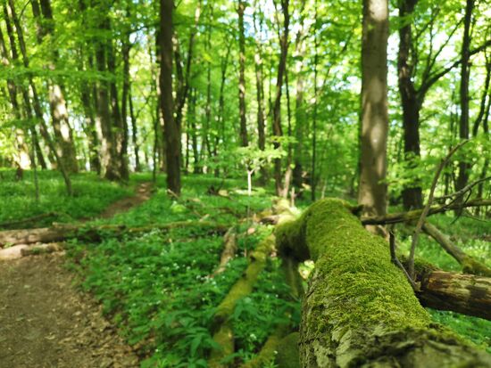 Es geht stetig bergauf, aber sehr angenehm schattig durch Waldgebiet. Mein Fitness-Programm erweitere ich durch sehr viele Kniebeugen Warum? Weil ich die Makro-Funktion am Handy mal ausgiebig teste und zu diesem Zweck alle paar Meter "in die Knie gehe"