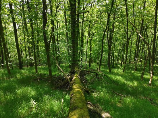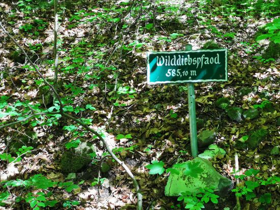 Ein Weg ist kaum noch zu erkennen. Bäume scheinen umgestürzt und teilweise auch gefällt. Da ich an einem Baumstumpf jedoch noch das Wander-Symbol sehe, nehme ich die Sache sportlich und klettere über Stämme oder krabbele unter ihnen hindurch.