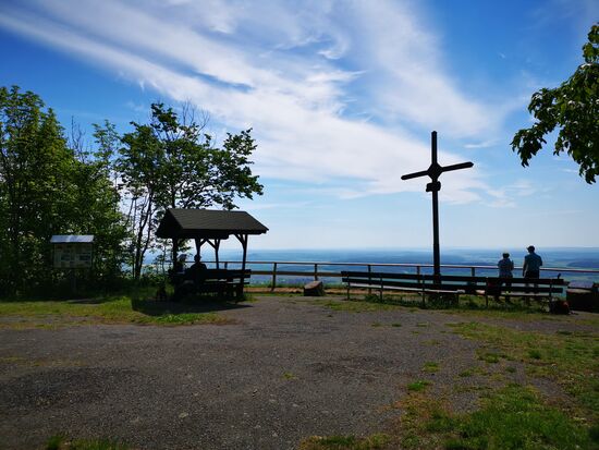 Von Bank (mit Sprüchen) zu Bank... und Höhenhinweisschild zu Höhenhinweisschild kämpfe ich mich zum Gipfel. Hier steht ein Mobilfunkmast. Wer jetzt enttäuscht ist, weil man keine Aussicht hat, sollte den Schildern folgen: