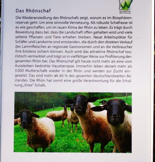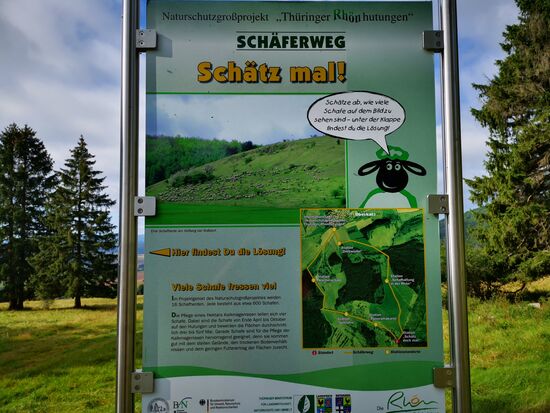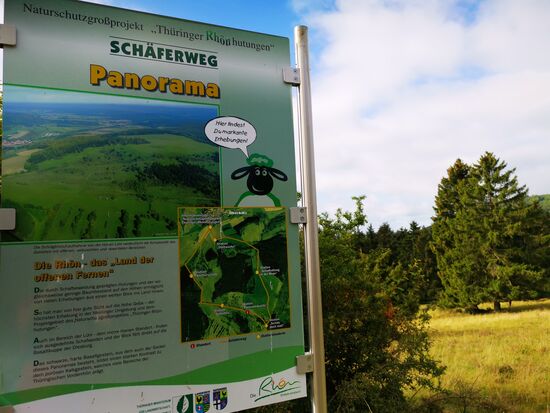 Der "Schäferweg", ein kleiner Rundweg von 5 km, integriert sich in den 15-km-Geba-Rundweg. Hier kann man viel über die Rhönschafe anhand sehr anschaulicher Info-Tafeln erfahren.