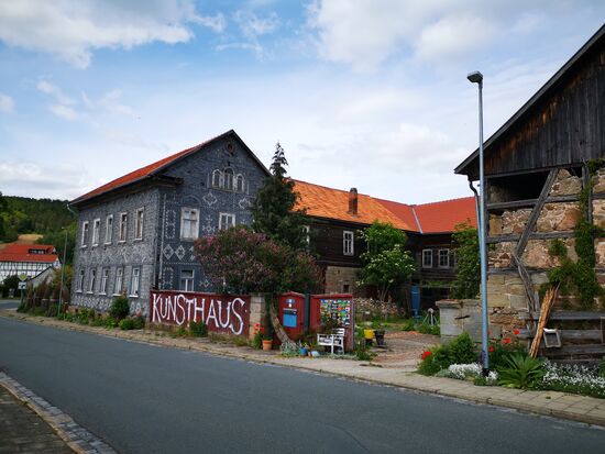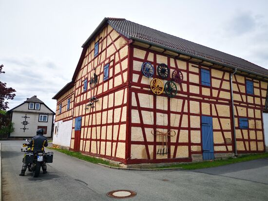 Am Schluss unserer heutigen Tour möchten wir uns noch am "Honigautomaten" in Kühndorf mit ein paar kleinen Souvenir-Gläsern eindecken. Leider sind die gerade ausverkauft. Ich sage Michael, dass meinen Erfahrungen nach in Thüringen, in jedem Haushalt Rotkäppchen-Sekt bevorratet ist, weil fast alle Thüringerinnen Rotkäppchen-Gelegenheits-Genießerinnen sind (bei fast jeder Gelegenheit ). Also klingel ich nochmal und frage die nette Dame, ob sie uns statt Honig eine Flasche Rotkäppchen verkaufen möchte. Sie meint, das sei überhaupt kein Problem, denn Rotkäppchen habe sie immer im Haus.
