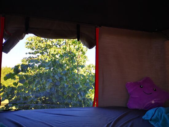 Auf einmal trifft etwas mit einem lauten Knall auf meinen Helm. Ich denke an Steinschlag, sehe aber weit und breit keine Steinchen... Nachdem das noch ein paar Mal passiert, begreife ich, dass heute wohl mehr Insekten unterwegs sind als die letzten Tage. Und offensichtlich können die nicht immer rechtzeitig ausweichen, wenn meine neugierige Kopfkugel am Fahrer vorbeischaut und dann knallt es.