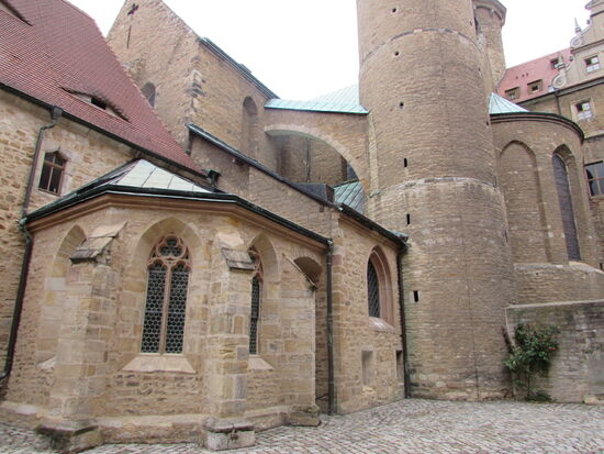 Die Merseburg ist eine Anlage bestehend aus Kloster, Dom, Schloss und angrenzendem Park. Nachdem wir die historischen Treppenstufen gestiegen sind kommen wir direkt vor der Merseburg an.
