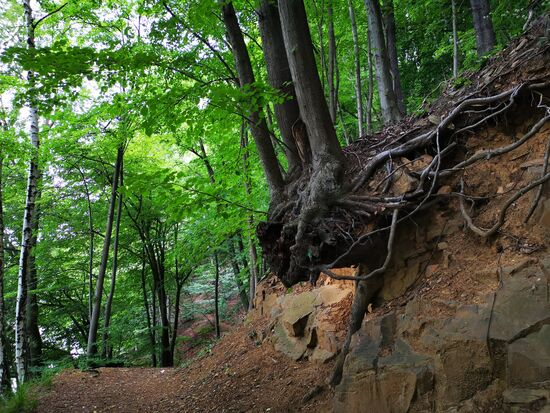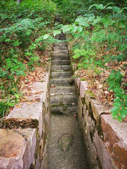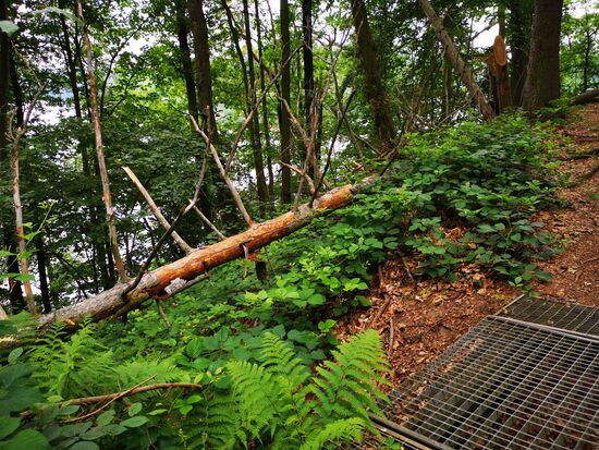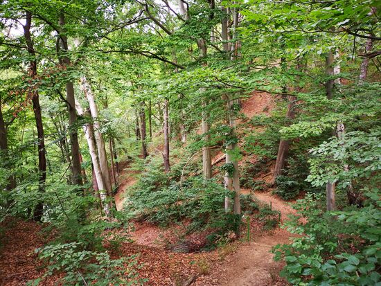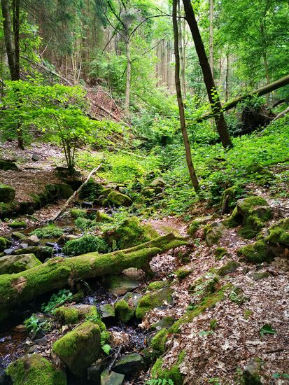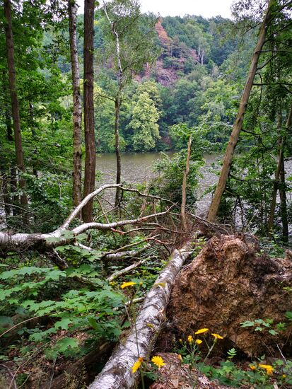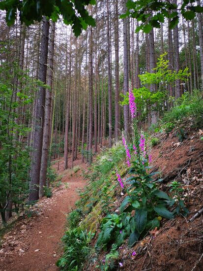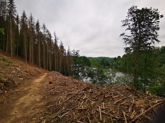 Leider haben die Wälder die Trockenheit, den Borkenkäfer und die Stürme der letzten Jahre auch nicht unbeschadet überstanden. Allerdings ist hier dafür gesorgt worden, dass der Weg bewanderbar ist.