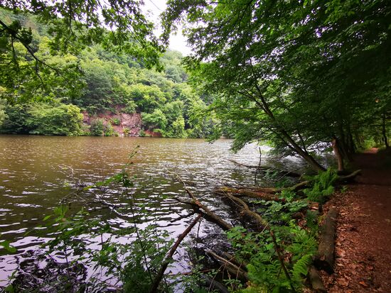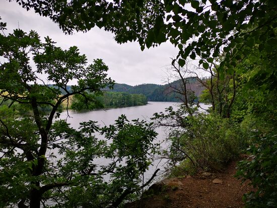 Um 8:20 Uhr starte ich. Es gibt einen 40 km langen Rundwanderweg - der scheidet leider mangels Training aus. Um die Talsperre selber sind es ca. 20 km. Da aber auch nicht klar ist, ob das Wetter den ganzen Tag hält - es ist ab Mittag Regen gemeldet - entscheide ich mich, die Hälfte zu laufen und mit der Fähre zurück zu fahren.