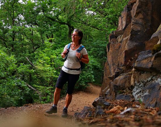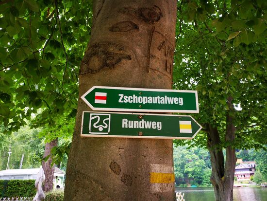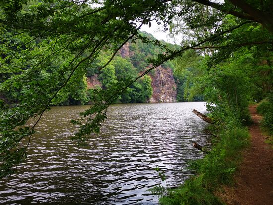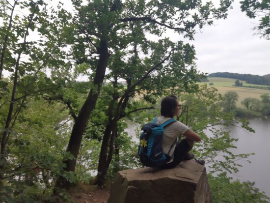 Der Weg entlang am Wasser der Zschopau ist gut beschildert und anspruchsvoll. Anspruchsvoll heißt aber auch: abwechslungsreich und so macht mir wandern Spaß. Manchmal ein federnder Waldboden, manchmal eher felsig. Es geht immer wieder auch ziemlich steil bergab und ebenso auch wieder hinauf. Herz-Kreislauf-Intervalltraining