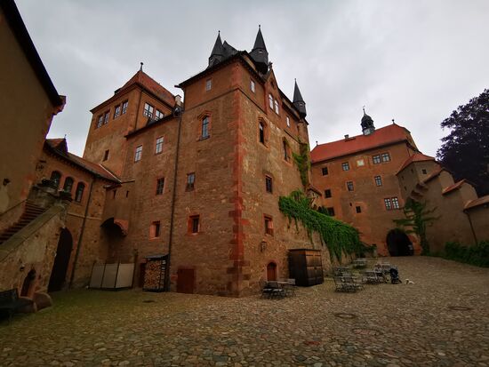 Da es erst Mittagszeit ist und glücklicherweise immer noch nicht regnet, beschließe ich nach einem Imbiss noch die im 14. Jahrhundert gegründete [f]Burg Kriebstein[/f] zu besichtigen.