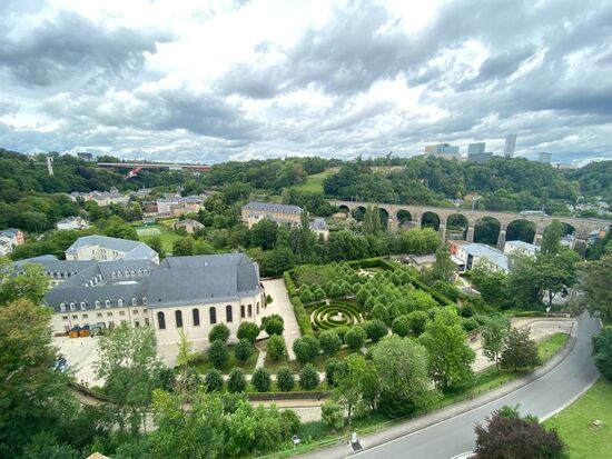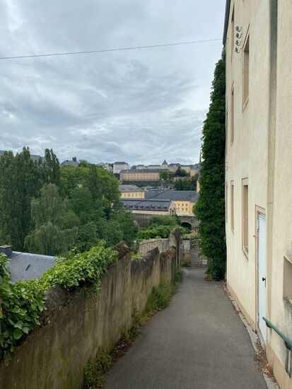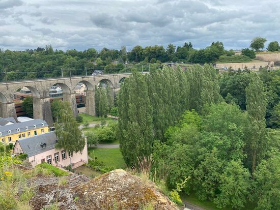 Die Bock-Kasematten sind leider auch wegen Corona geschlossen. Wir spazieren auf den Wallanlagen--hier bietet die Promenade Chemin de la Corniche spektakuläre Aussichten