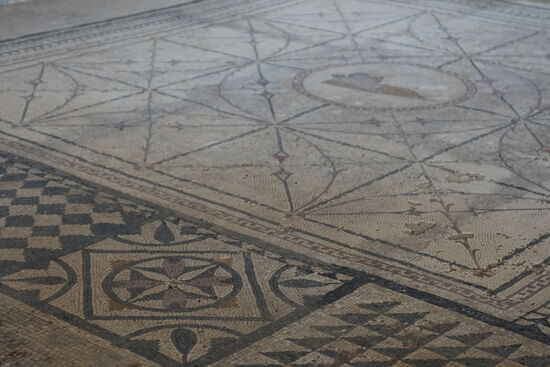 Die römische Villa hat 7 mit Mosaiken bedeckte Räume und 3 Räume für die Dienerschaft mit Erdboden.